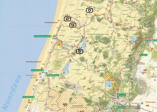 In de Kennemerduinen staan vier fotopalen, zie ook op het kaartje hiernaast.
