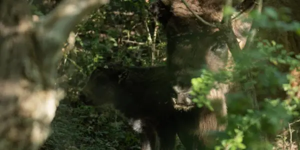 Al een aantal weken was één van de oudere koeien af en aan niet bij de kudde. Gezien de periode van het jaar vermoedden we dat er een kalfje op komst was. En ja hoor! Half mei ontdekte één van de boswachters het kalfje. Het stond verscholen bij moeder in het dichte struikgewas.