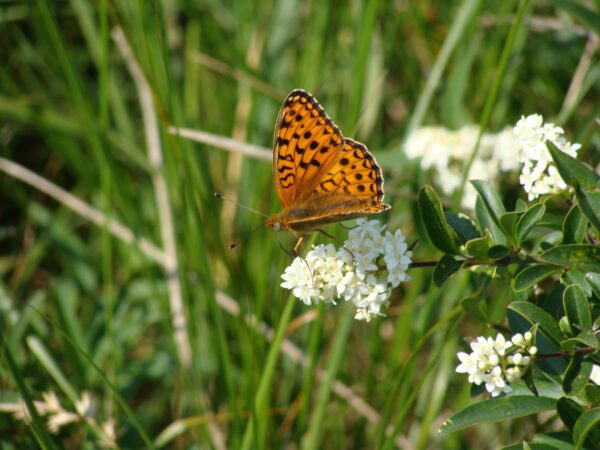 Niet voor niets heeft deze vlinder ‘parelmoer’ in haar naam. De kleine zeldzame parelmoervlinder is herkenbaar aan het fraaie oranje-met-zwarte-stippenpatroon van de vleugels. Maar juist de onderkant heeft van die opvallende zilverglanzende vlekken. Precies: net parelmoer. Als je geluk hebt kom je deze vlinder van april tot en met oktober in de duinen tegen. Met de grootste kans in juli en augustus. De rupsen van deze vlinder eten graag de blaadjes van het duinviooltje. Omdat duinviooltjes alleen in los zand ontkiemen, zijn open zandplekjes o zo belangrijk in het Nationaal Park.